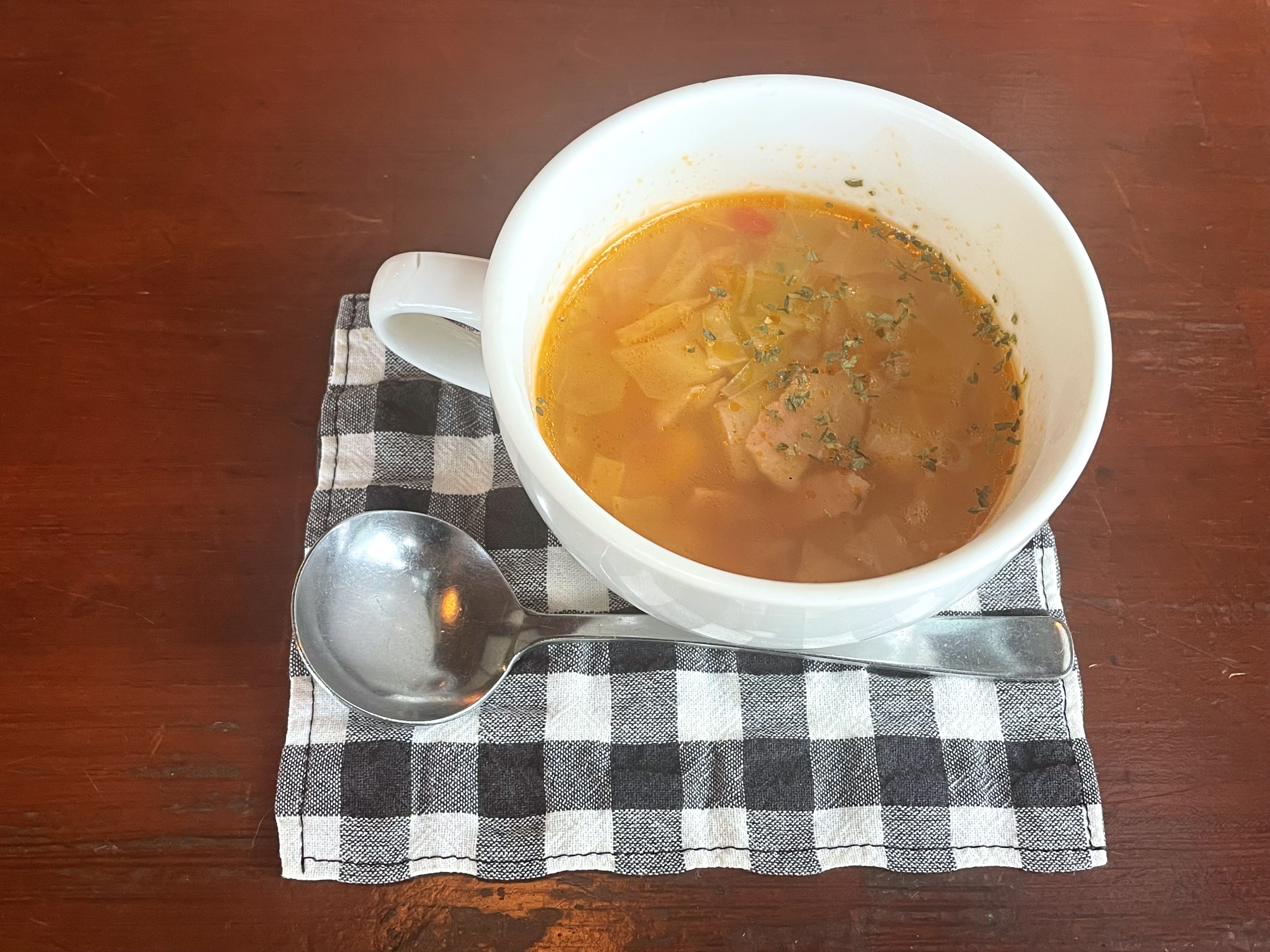↑温かいやさしいお味のスープ!ミネストローネかな?
