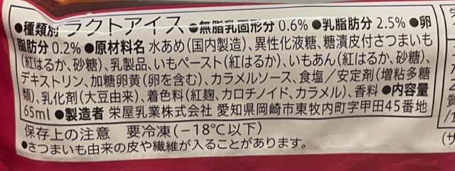 セブンイレブンアイス「まるで紅はるか」の栄養成分チェック!